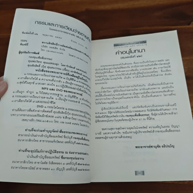ขายหนังสือกรรมและการเวียนว่ายตายเกิด - พระชาญชัย อธิปัญโญ