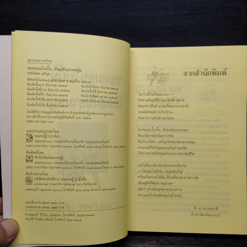 ขายหนังสือขอหมอนใบนั้นที่เธอฝันยามหนุน - ประภัสสร เสวิกุล