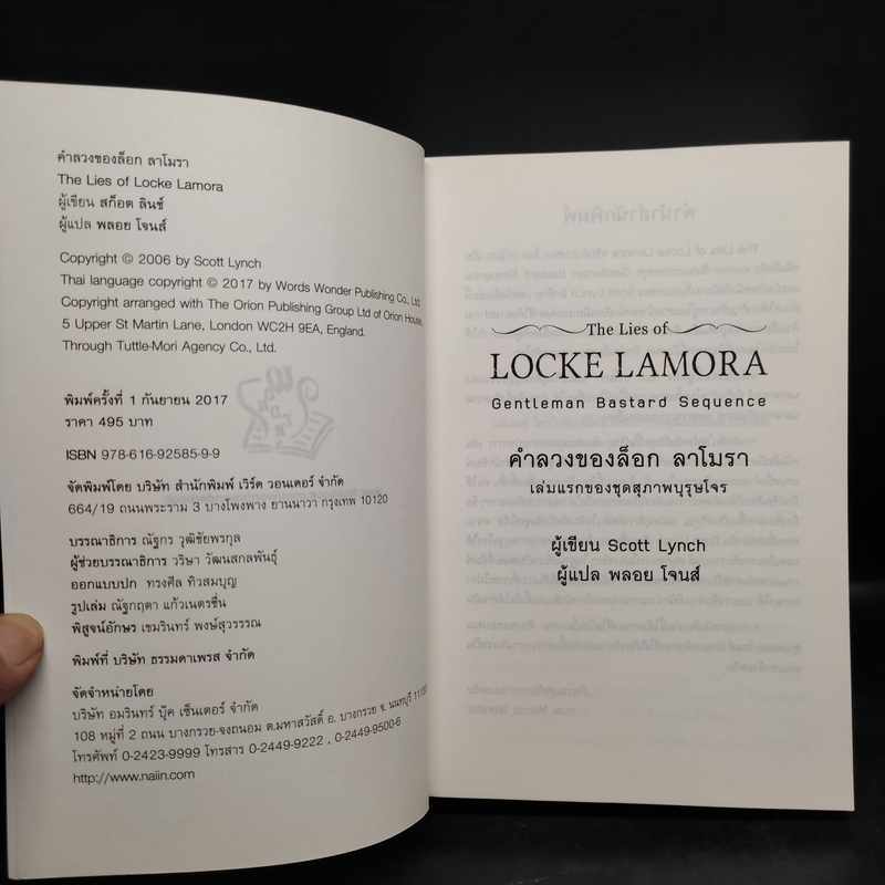ขายหนังสือคำลวงของล็อก ลาโมรา + โจรสลัดทะเลเดือด - สก็อต ลินช์ (Scott Lynch)
