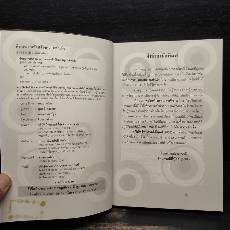 ขายหนังสือคิดบวก พลังสร้างความสำเร็จ - สุทธิชัย ปทุมล่องทอง