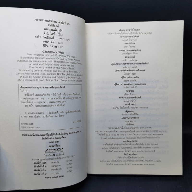 ขายหนังสือชาร์ล็อตต์ แมงมุมเพื่อนรัก - อี.บี ไวท์