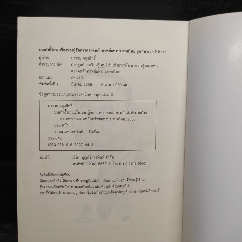 ขายหนังสือบนเก้าอี้ร้อนเรื่องของผู้จัดการตลาดหลักทรัพย์แห่งประเทศไทย ยุค"มารวย ไปรวย" - มารวย ผดุงสิทธิ์