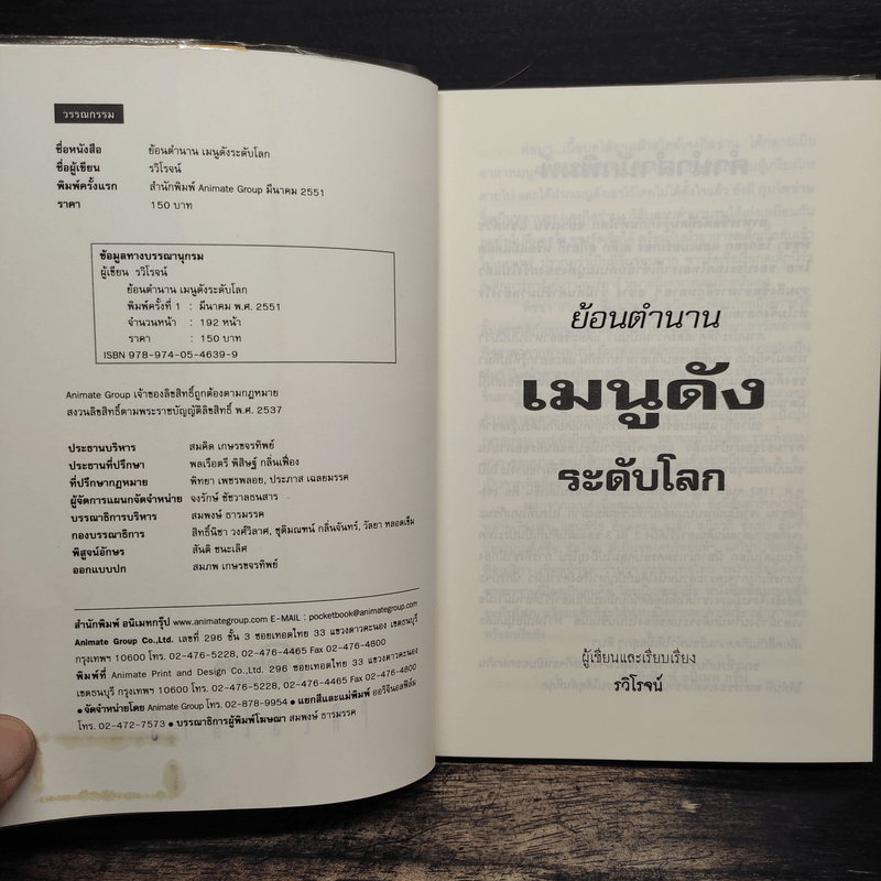 ขายหนังสือย้อนตำนานเมนูดังระดับโลก - รวิโรจน์