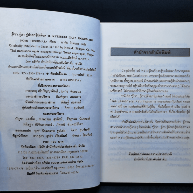 สินค้าอื่นๆที่ใกล้เคียงกับ หนังสือรู้เขา...รู้เรา รู้ด้วยกรุ๊ปเลือด - โนมิ โทชิมะสะ