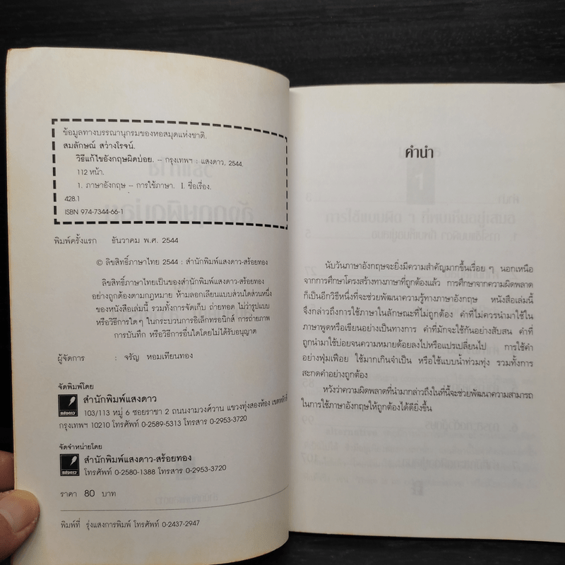 ขายหนังสือวิธีแก้ไขอังกฤษผิดบ่อย - สมลักษณ์ สว่างโรจน์