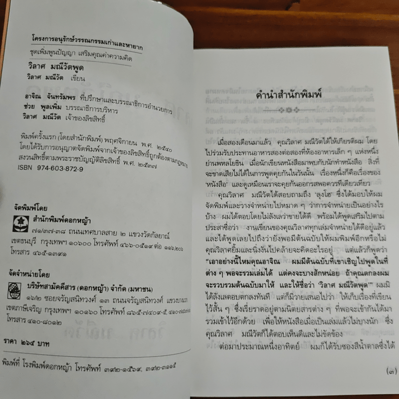 สินค้าอื่นๆที่ใกล้เคียงกับ หนังสือวิลาศ มณีวัตพูด - วิลาศ มณีวัต