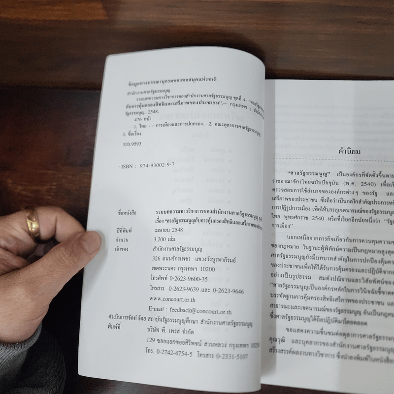 ขายหนังสือศาลรัฐธรรมนูญกับการคุ้มครองสิทธิและเสรีภาพของประชาชน