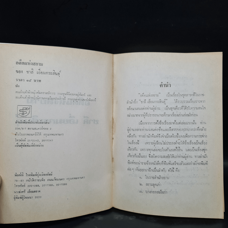 ขายหนังสืออดีตแห่งสยาม - ชาลี เอี่ยมกระสินธุ์