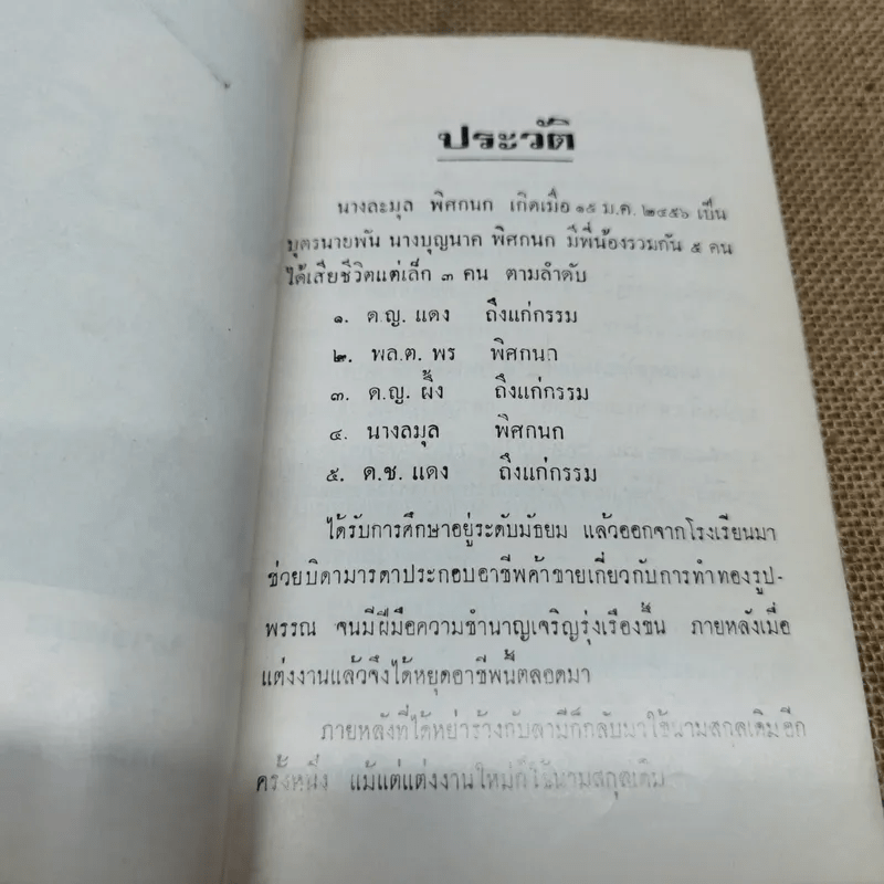 ขายหนังสืออนุสรณ์นางลมุล พิศกนก
