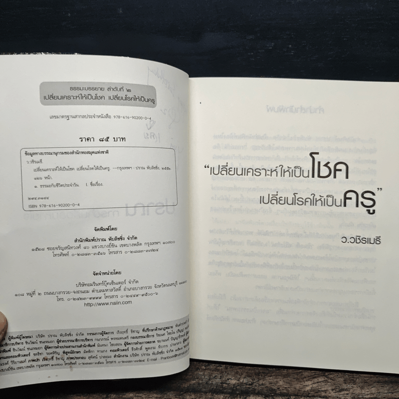 ขายหนังสือเปลี่ยนเคราะห์ให้เป็นโชค เปลี่ยนโรคให้เป็นครู - ว.วชิรเมธี
