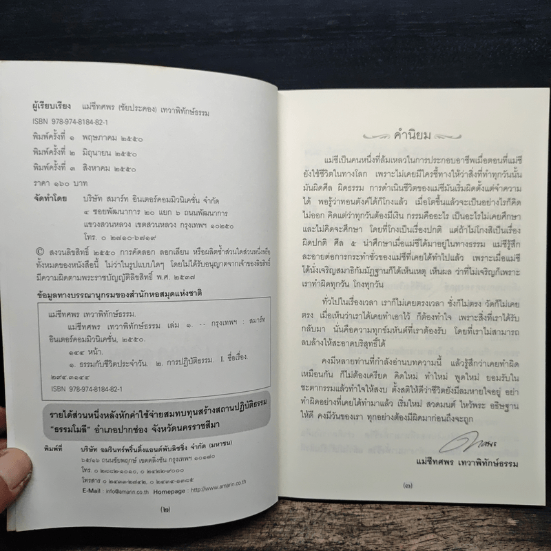 ขายหนังสือแม่ชีทศพร เทวาพิทักษ์ธรรม เล่ม 1