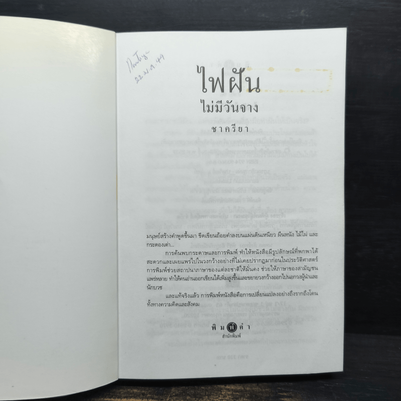 สินค้าอื่นๆที่ใกล้เคียงกับ หนังสือไฟฝันไม่มีวันจาง - ชาครียา