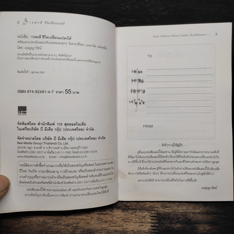 ขายหนังสือ15 พรดี ชีวิตเปลี่ยนแปลงได้ - เบญญาวัธน์