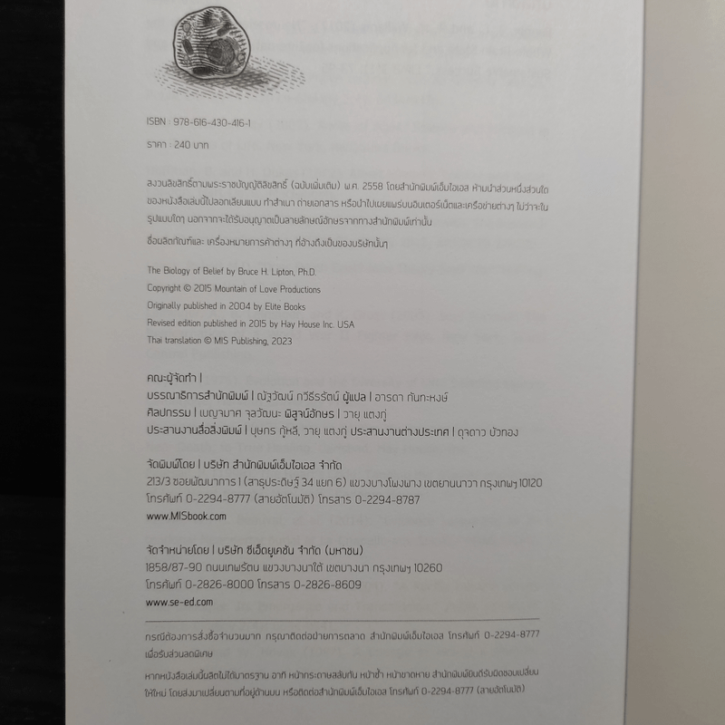 ขายหนังสือThe Biology of Belief ฉบับภาษาไทย ศาสตร์แห่งการใช้ความคิดเพื่อสร้างชีวิต - Bruce H. Lipton PhD