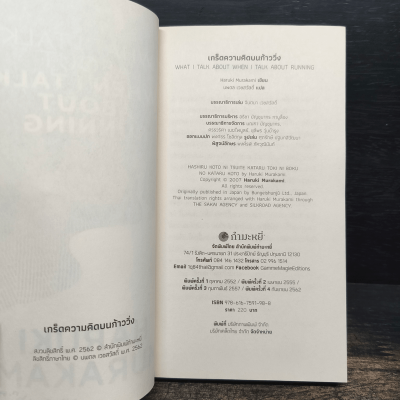 ขายหนังสือWhat I Talk About Wen I Talk About Runnng เกร็ดความคิดบนก้าววิ่ง - Haruki Murakami